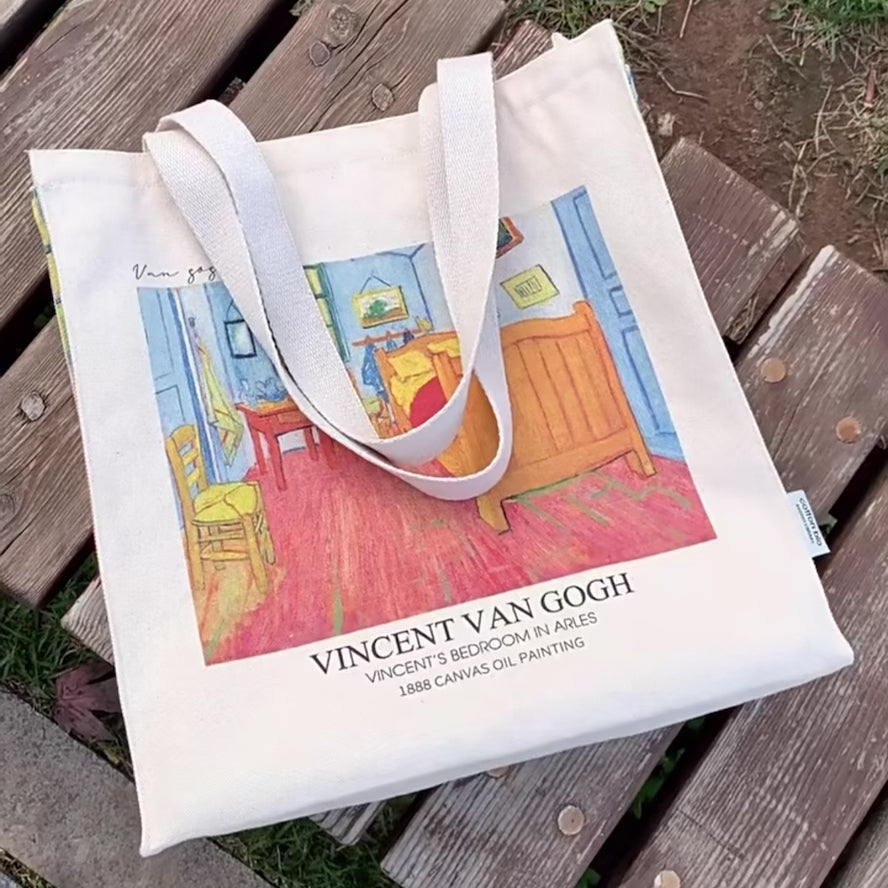 Vincent Van Gogh Dutch Post-Impressionist Painter "Bedroom in Arles, 1888" Aesthetic Canvas Art Tote Bag with Zip Closure and Inner Zipped Pocket