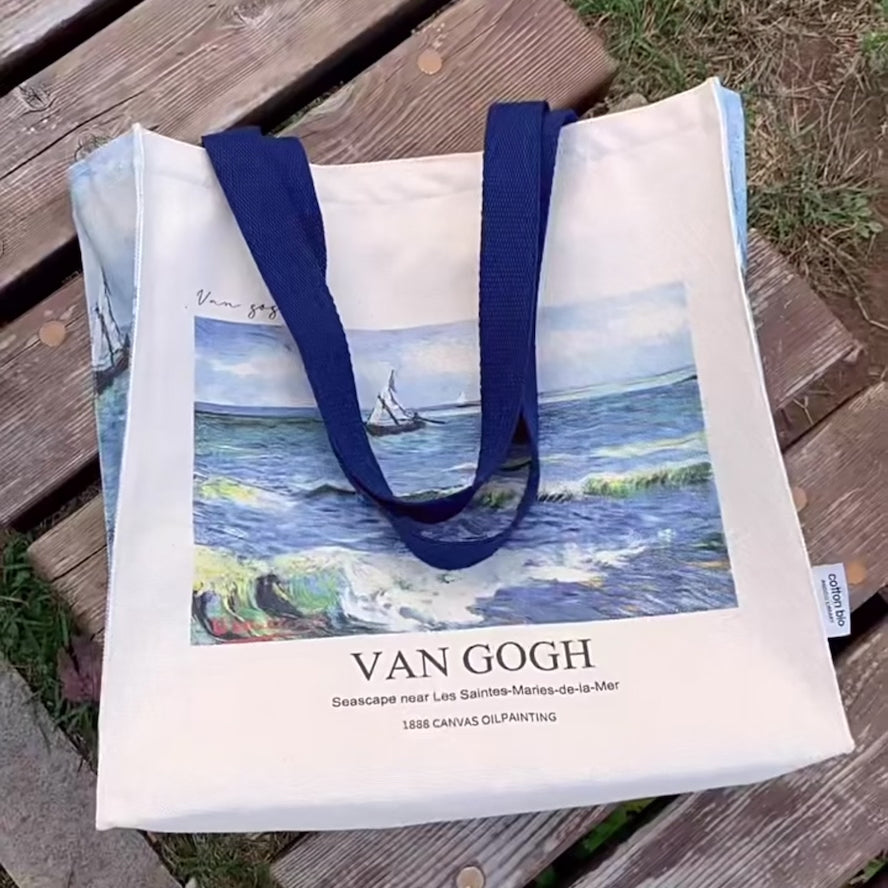 Vincent Van Gogh Dutch Post-Impressionist Painter "Seascape near Les Saintes-Maries-de-la-Mer, 1888" Aesthetic Canvas Art Tote Bag with Zip Closure and Inner Zipped Pocket