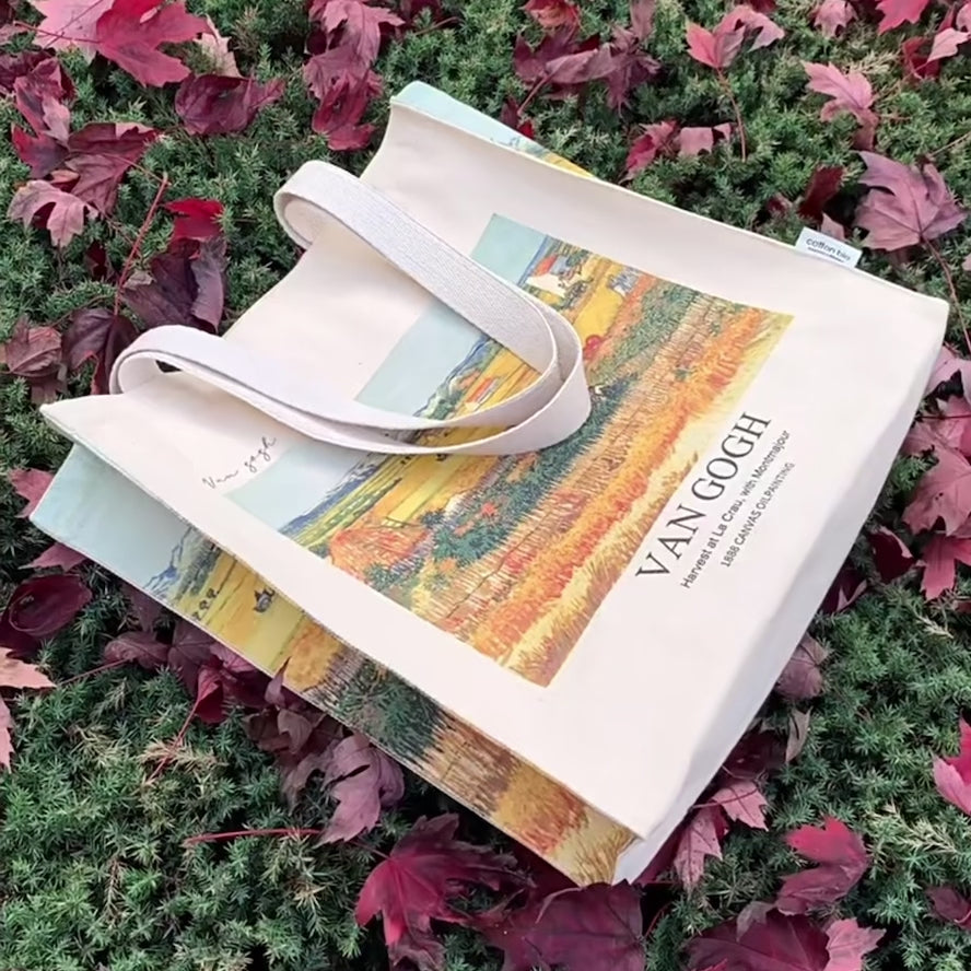 Vincent Van Gogh Dutch Post-Impressionist Painter "The Harvest, 1888" Aesthetic Canvas Art Tote Bag with Zip Closure and Inner Zipped Pocket